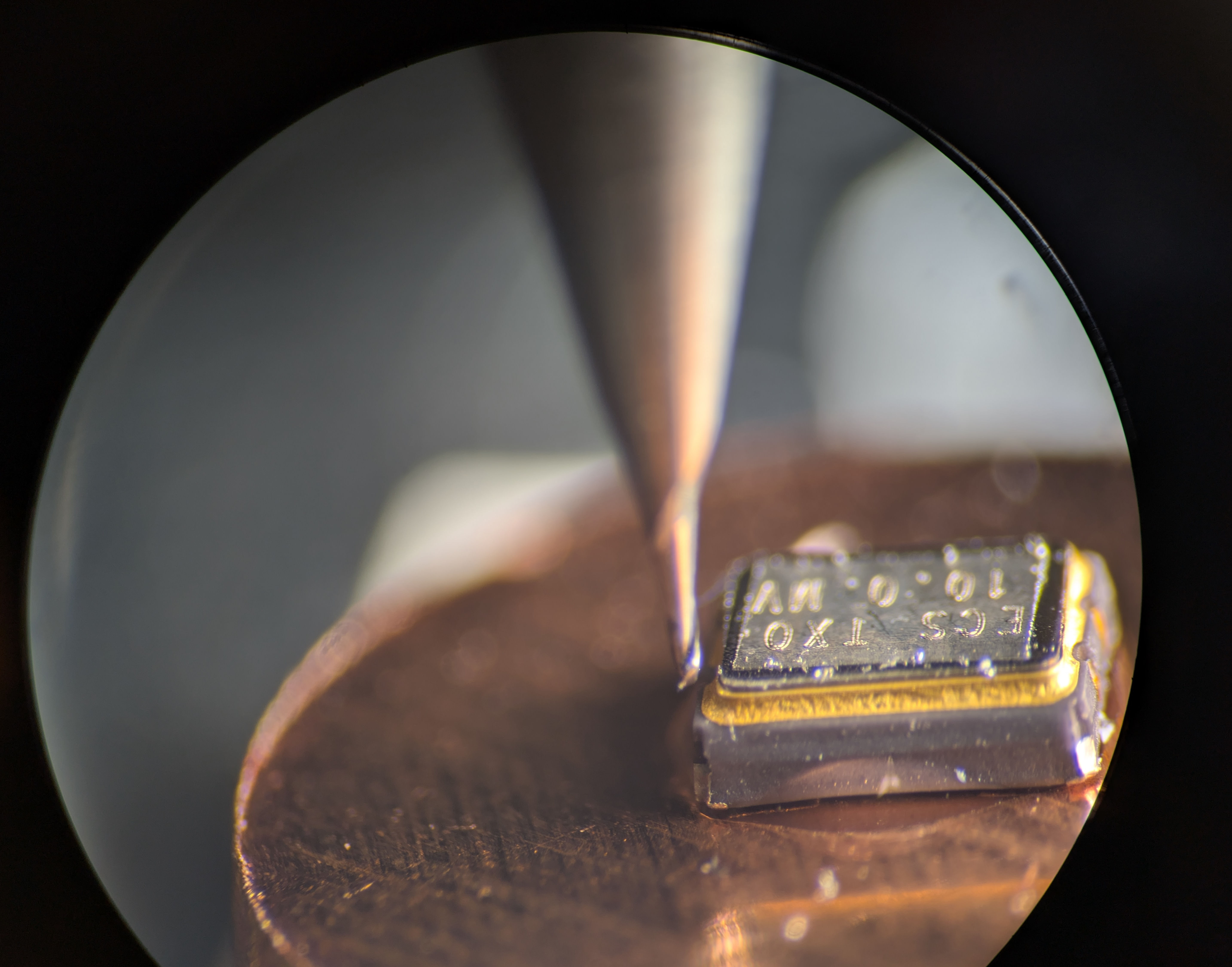 I was gradually becoming less confident that the quartz crystal was the source of the failure, but any testing or analysis of the oscillator driver chip would require removing the crystal, potentially destroying it in the process (and, best case, destroying the connections between the crystal and substrate). So before taking that irreversible step, I wanted to do some electrical measurements of the crystal.